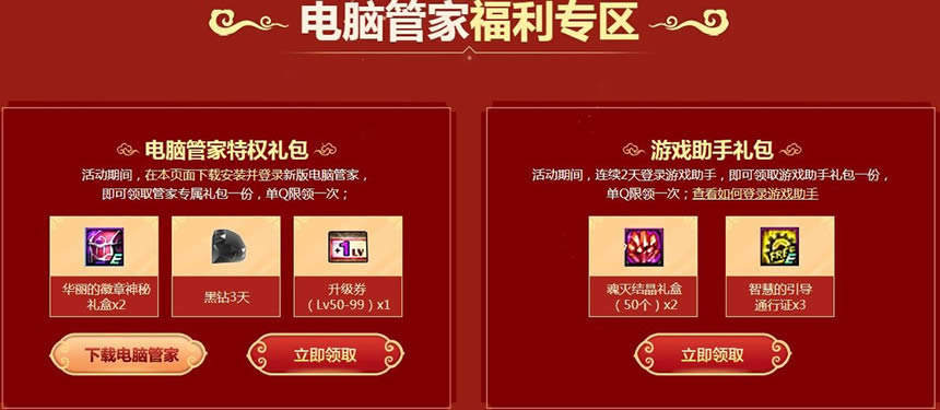 页面上的活动礼包请用户根据相应规则确认领取资格后领取;