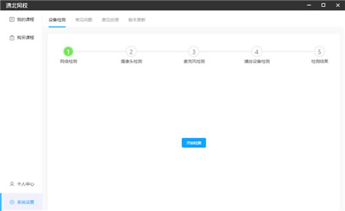 6、系统设置,支持对设备进行检测,用户可以快速检测网络、摄像头、麦克风等设备。