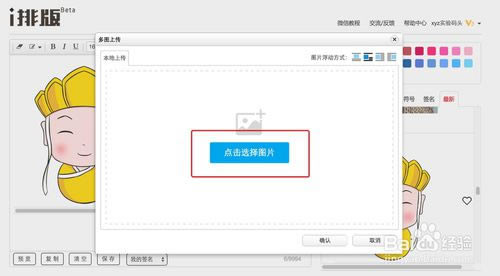 点击替换图片之后,就会弹出本地图片上传的窗口,点击上传,因为这里的图片是一张一张替换的,所以一次只能替换、上传一张新图片,最多替换6张。