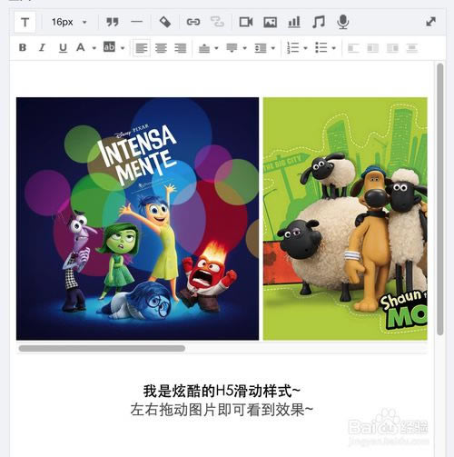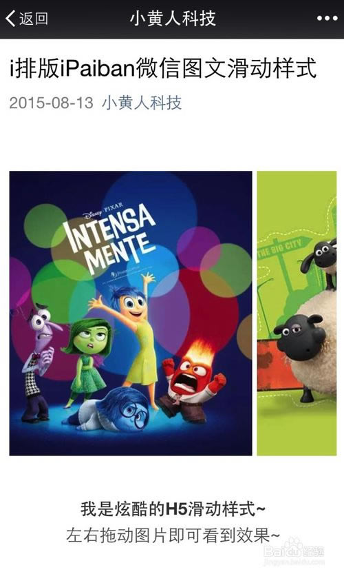 然后预览到手机上的效果是这样的,因为手机上无法正常显示“滑动条”,所以还需要加以文字说明提示下你的读者,这里的图片有惊喜哦~