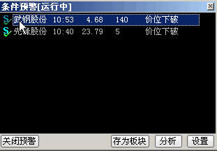在预警列表上双击“价位下破”或者“价位上破”的股票项,将弹出闪电卖出或者闪电买入的对话框,如下图: