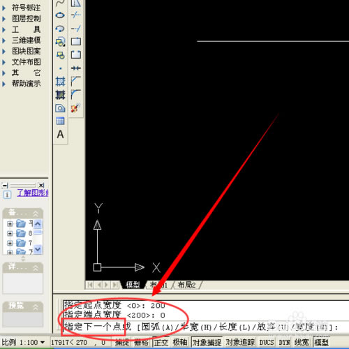 点击enter,输入端点的宽度大小,0(这个必须是0,因为是箭头嘛)