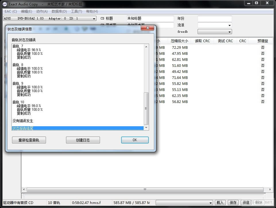 得到的整轨的WAV文件与CUE和抓轨记录LOG