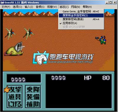 例如我们打开模拟器,载入rom后,选择修改菜单,Game Genie 金手指密码