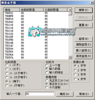 修改的最大值是255了,先不管了。在最下面的输入框输入80,点击搜索。【以上的步骤表示搜索当前值为80的地址】,结果搜出很多条。不知道哪个才是。