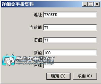 这时候再打开3楼的对话框时就会发现多了一条金手指记录了,当然也可以为这个金手指加一个描述,以方便以后反复使用。