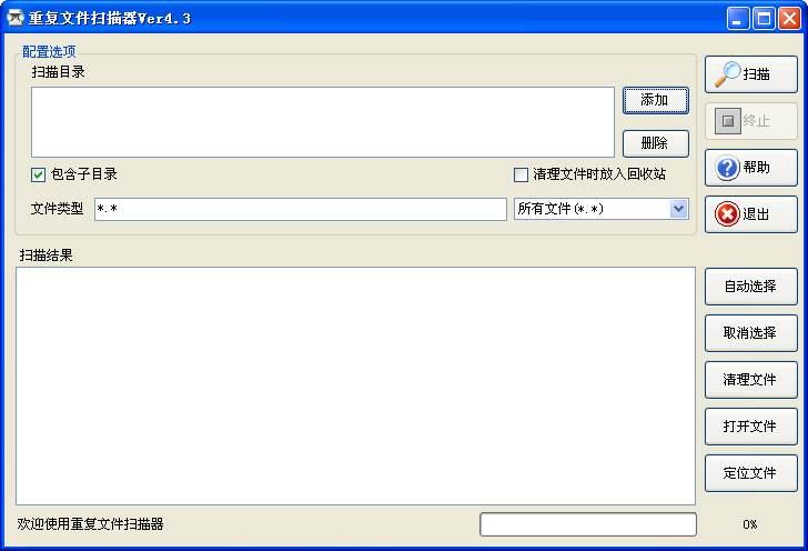 重复文件扫描器可以为你快速清理磁盘上的任何类型的重复文件,此版本为免费版本,无需任何费用,软件轻便小巧,美观实用。