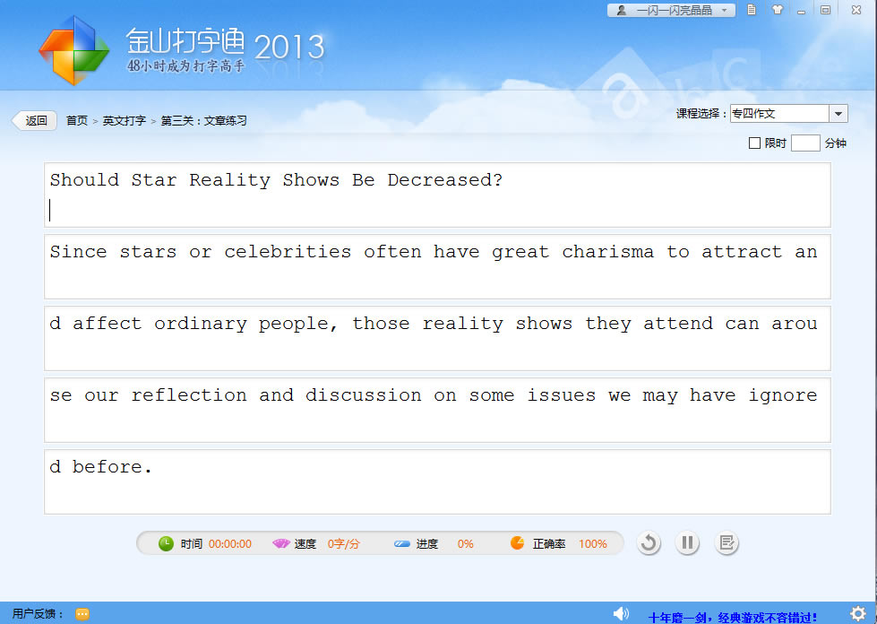 提供英文打字、拼音打字、五笔打字三种主流输入法针对性学习