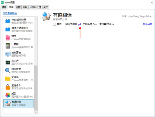4、重启之后该插件就生效了,可以在wox的设置——插件里看到有这款软件了