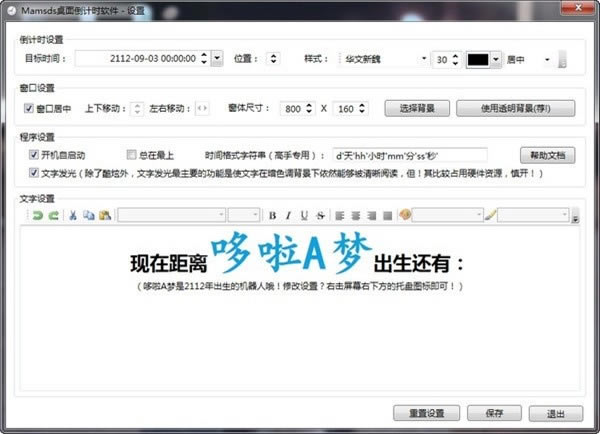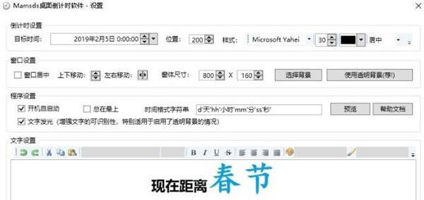 mamsds软件下载,可以去在你的桌面进行倒计时的软件工具,mamsds桌面倒计时工具可以为你带来一个更好的桌面倒计时软件工具,这里的所有内容全都可以去进行快速的设置你需要的桌面倒计时功能,多种不同功能设置全都非常的方便,去进行配置你的插件工具选项,让你能选择你需要的倒计时功能,有需要进行桌面倒计时的用户欢迎在本站下载。