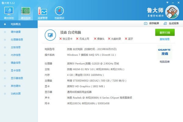 鲁大师拥有专业而易用的硬件检测,不仅超级准确,而且向你提供中文厂商信息,让你的电脑配置一目了然,拒绝奸商蒙蔽。它适合于各种品牌台式机、笔记本电脑、DIY兼容机,实时的关键性部件的监控预警,全面的电脑硬件信息,有效预防硬件故障,让您的电脑免受困扰。有硬件温度监测及驱动管理等带给你更稳定的电脑应用体验。