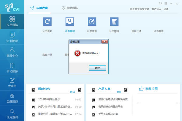 用户可查看Ukey中的加密、签名证书信息,验证及修改Ukey口令,查看Ukey中的电子签章。