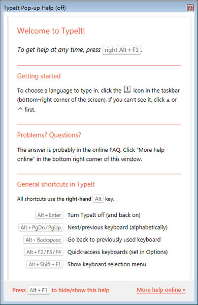 一种方法是设置快速访问键盘。TypeIt有三个用户定义的快捷键:Alt+F2、Alt?+?F3和Alt+F4。您可以设置这些快捷键中的每一个来打开您选择的键盘。为此: