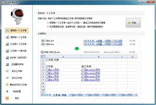 Excel汇总大师是一款多功能Excel汇总软件,拥有Excel工作簿、工作表的批量提取、汇总、合计、拆分、批量重命名等功能,支持Excel2007至2016各版本,可满足用户的多种Excel表格处理需求,有需要的朋友赶快下载吧!