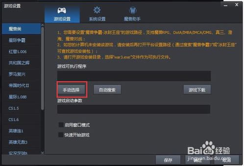3、然后选择电脑中的游戏war3.exe文件位置,注意,不是FrozenThrone.exe。点击【手动选择】。如下图。