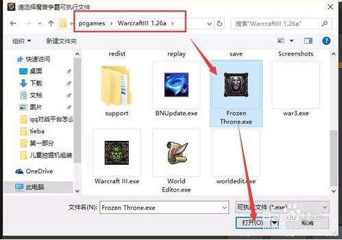 4、找到电脑中war3.exe位置。选中它,点击【打开】。